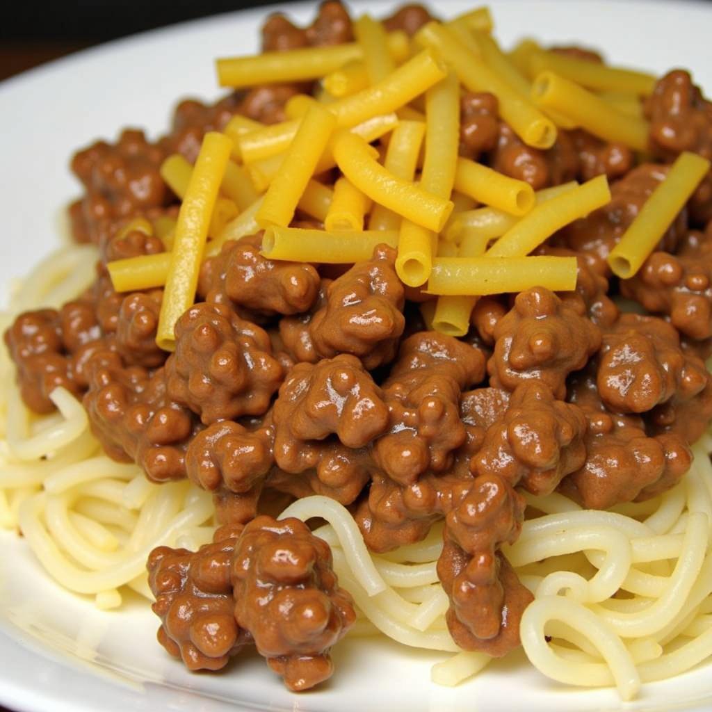 Combine ground beef, kidney beans, chili powder, and macaroni to create this hearty and spicy fusion of chili and mac and cheese. It’s perfect for cold evenings.