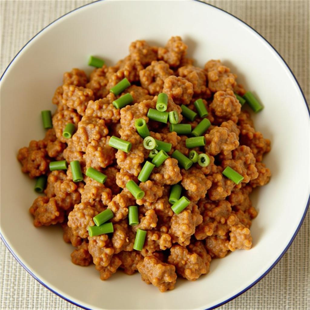 Combine ground beef with teriyaki sauce and mix it into cooked rice. Garnish with green onions for a sweet and savory meal.