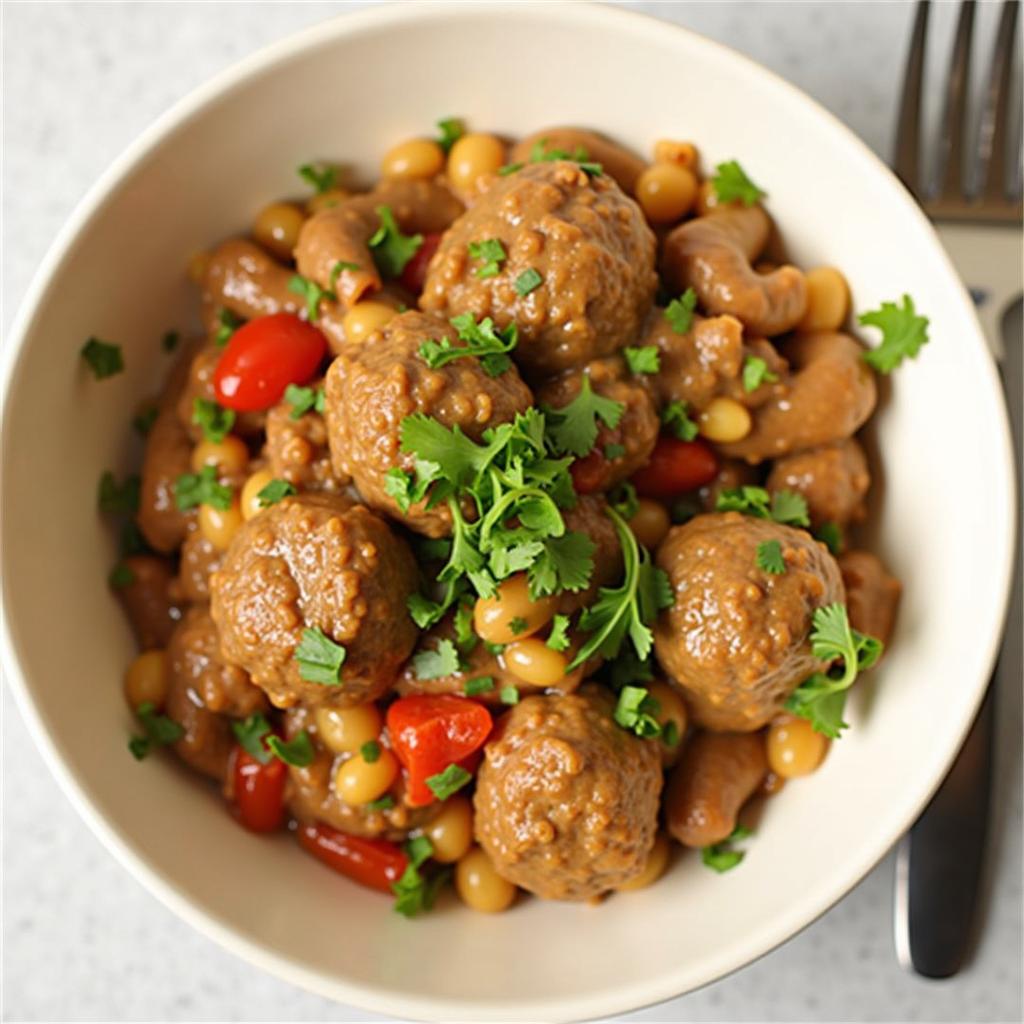 - Combine ground beef with breadcrumbs, egg, and seasonings; form into small meatballs.