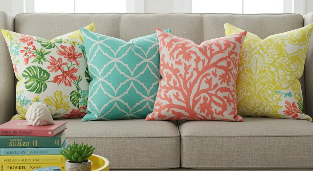 Incorporate throw pillows in summer-inspired colors like aqua, coral, yellow, or green. Floral, tropical, or geometric prints add a lively touch, instantly updating your sofa or chairs for the season.