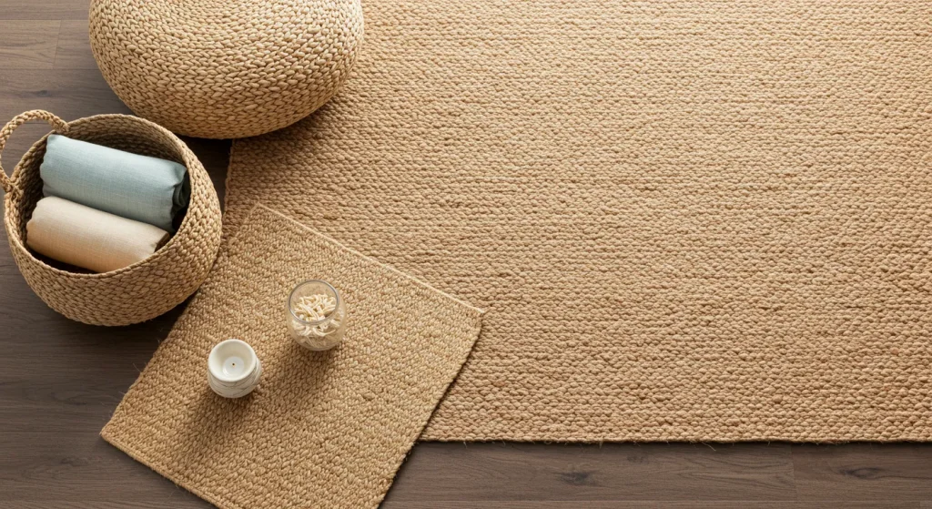 A jute, sisal, or seagrass rug brings warmth and texture while maintaining a breathable and relaxed vibe. These materials complement a summer aesthetic and are perfect for high-traffic areas.
