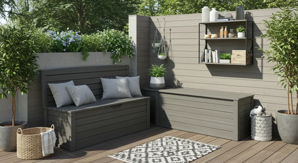 Keep your patio clutter-free with smart storage solutions. Storage benches, deck boxes, and wall-mounted shelves help keep outdoor essentials organized while enhancing the aesthetic appeal of the space.