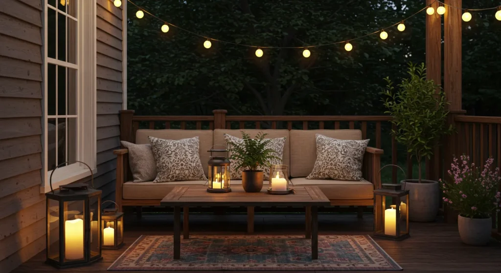 Soft lighting enhances the ambiance of any patio. Hang string lights across the space to create a warm, inviting glow. Lanterns and solar-powered LED candles are also great additions for a cozy evening setting.