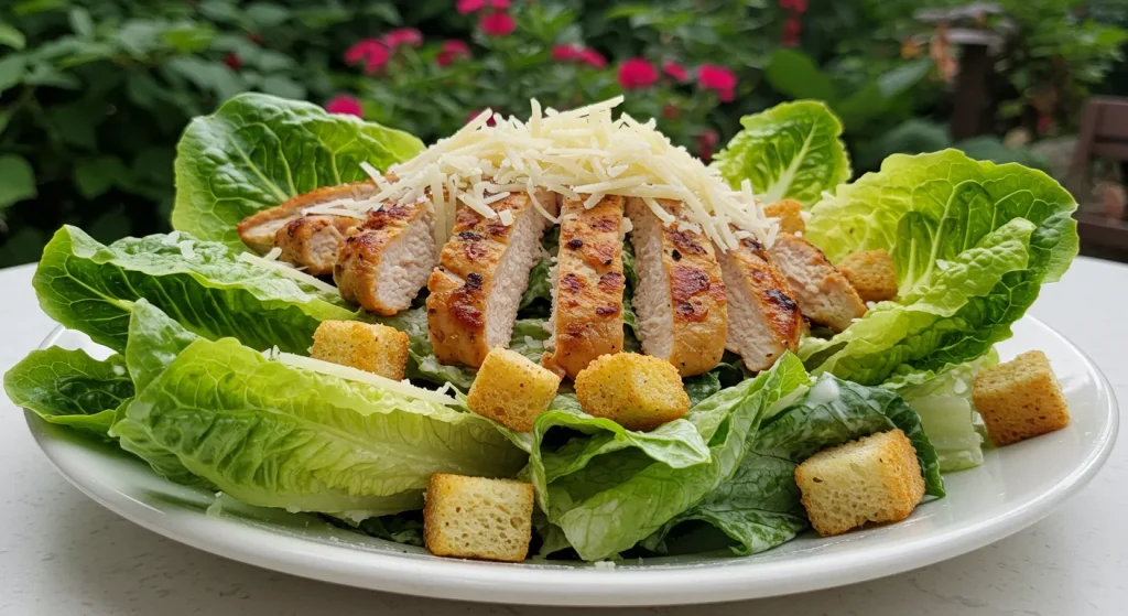 - Pour a generous amount of your favorite creamy Caesar dressing over the salad.