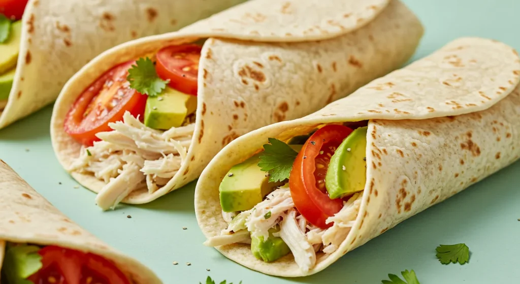 - Spoon a generous amount of the chicken salad onto the center of the tortilla.
