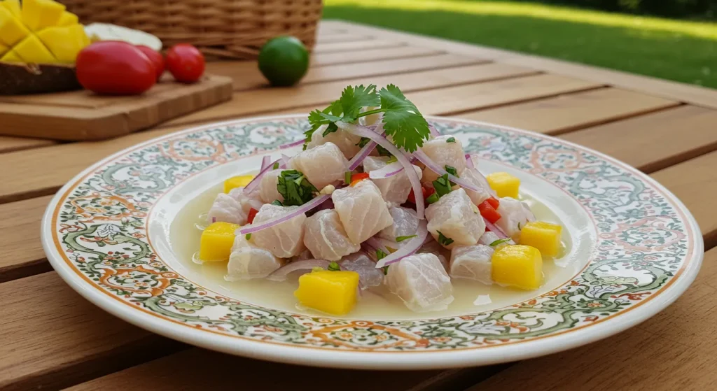 Ceviche is a popular Latin American dish where fresh, raw fish is “cooked” in a marinade of citrus juice. It is incredibly fresh, light, and perfect for a hot day.