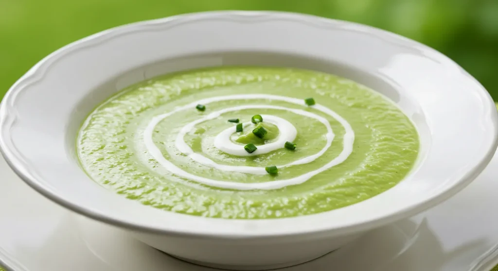 This chilled soup is incredibly smooth, creamy, and refreshing. The avocado gives it a luxurious texture without any heavy cream.
