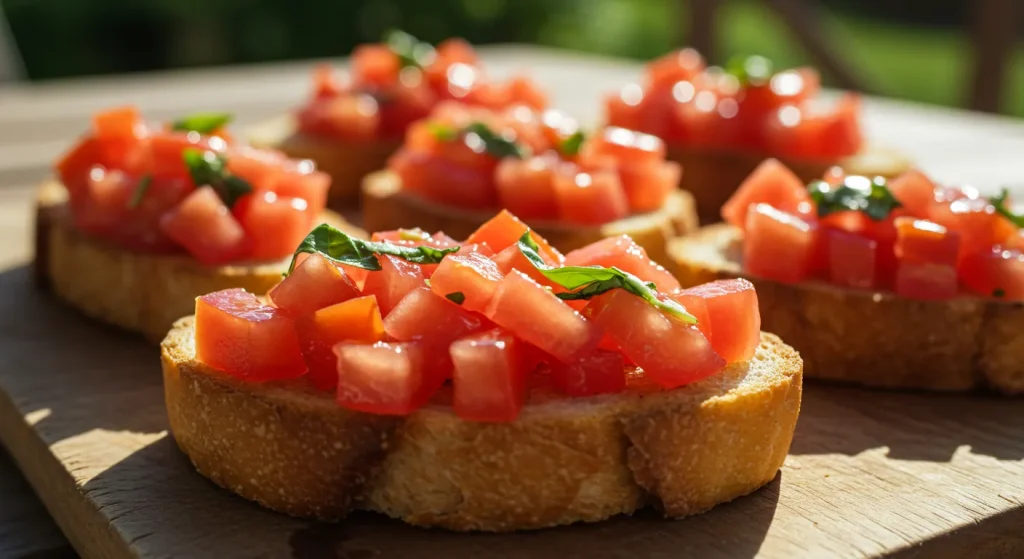 - To serve, spoon a generous amount of the fresh tomato mixture onto each piece of toasted bread.