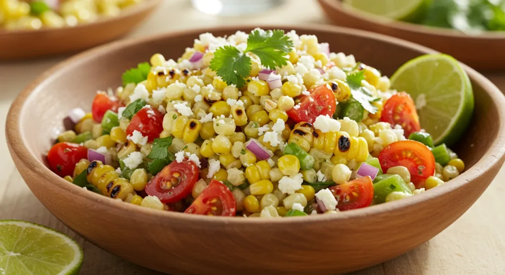 All the amazing flavors of Mexican street corn (elote), but in an easy-to-eat salad format. It is creamy, zesty, cheesy, and a little spicy.