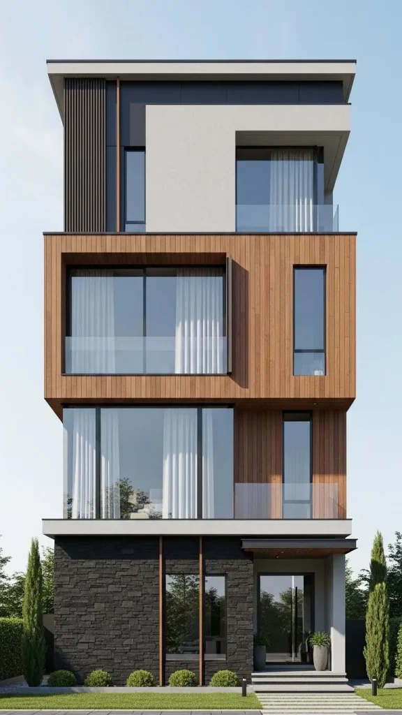 Designing a vertical home requires a careful balance of proportion and style to avoid a boxy look. The elevation serves as the face of the building and sets the tone for the entire neighborhood. It demands a creative approach to materials and architectural forms.