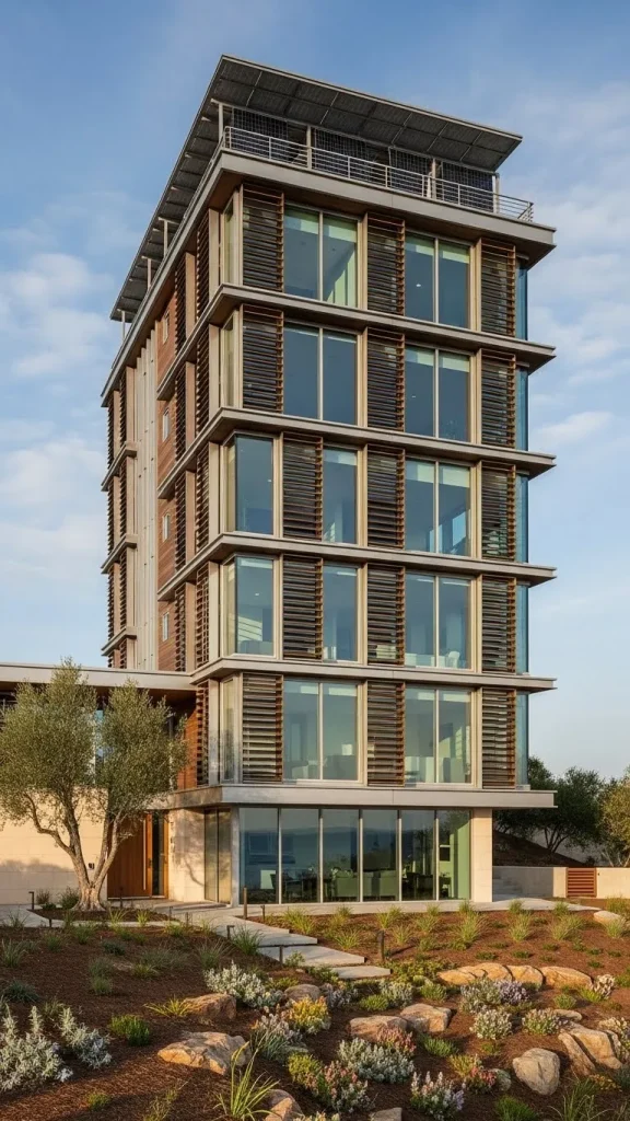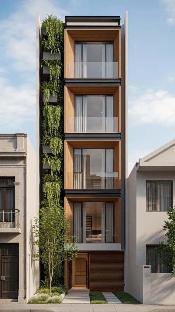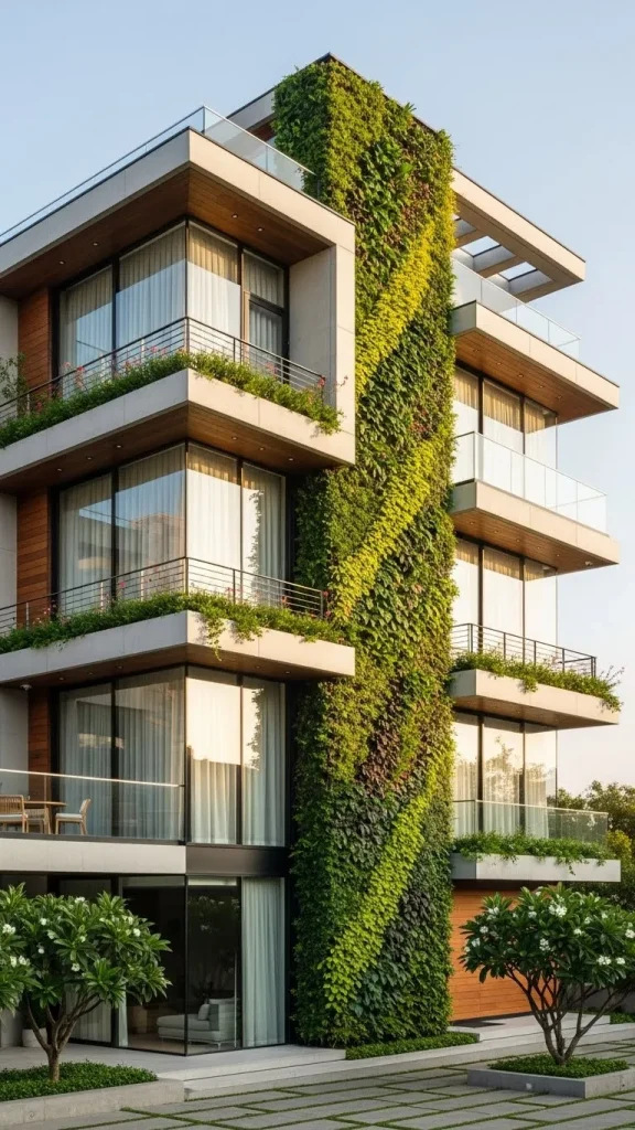 This eco-friendly approach seamlessly bridges the gap between urban living and nature, creating a dynamic, breathing facade.