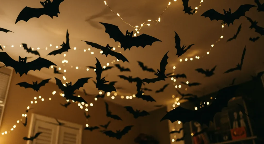 Create a swarm of bats that appear to be flying around your dining room light fixture.