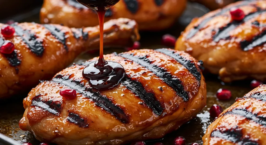 - Brush the pomegranate molasses glaze onto the chicken during the final few minutes of grilling.