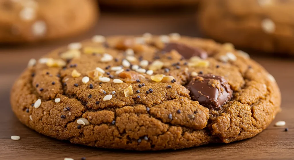 Using tahini (sesame paste) as the primary fat gives the cookie a sophisticated, nutty, and slightly savory edge that balances the sweetness beautifully.