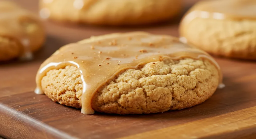 A soft pumpkin cookie is topped with a glaze made from milk that has been steeped with a sugary cereal, like cornflakes or Cinnamon Toast Crunch.