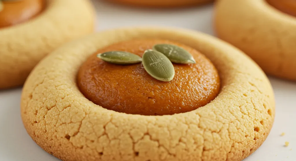 13. The “Pumpkin Pie” Thumbprint CookieA soft, chewy pumpkin cookie is indented in the center and filled with a dollop of spiced pumpkin butter or cheesecake filling.$10 – $16