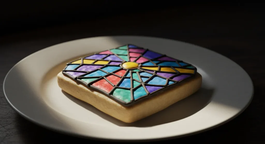 14. The “Stained Glass” Cut-Out CookieA pumpkin-shaped cookie with a smaller center cutout, filled with crushed hard candies to create a beautiful, translucent effect.$12 – $18