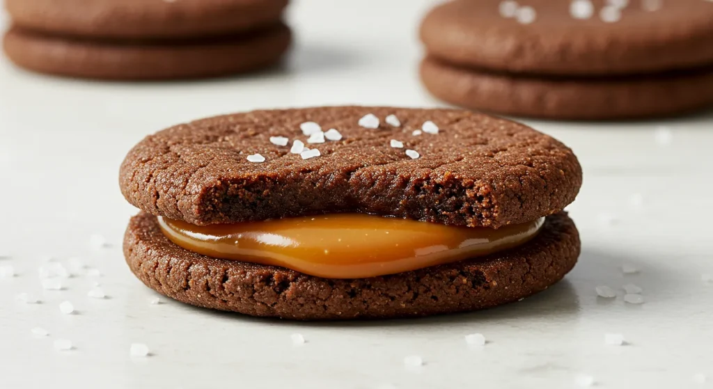 • Sprinkle the top of each cookie with coarse sea salt before baking to balance the sweetness and hint at the filling.
