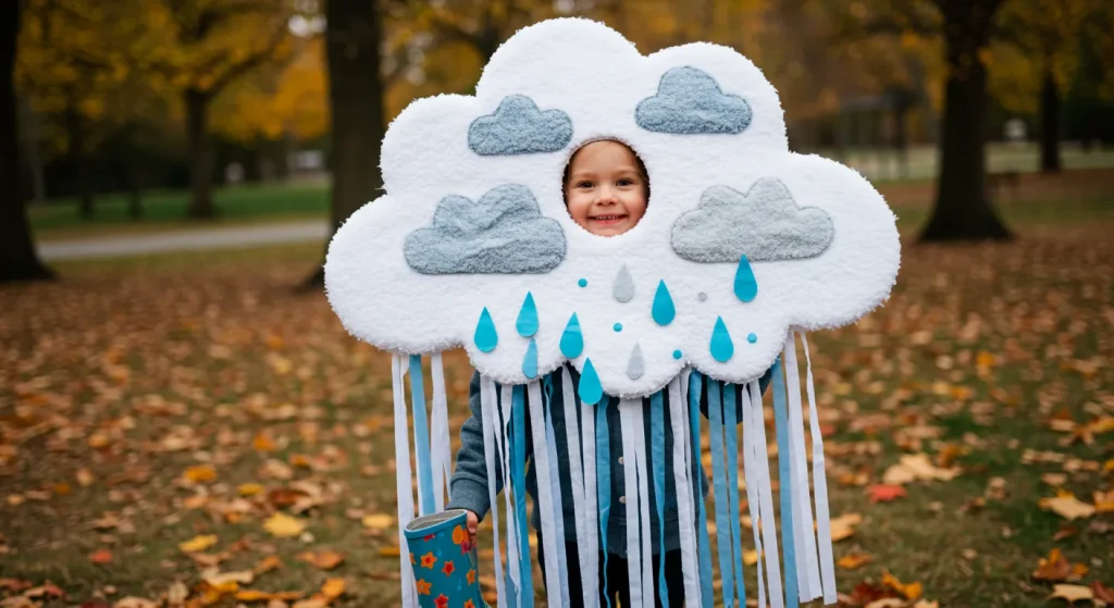 - Have your child wear simple, gray or blue clothing underneath to represent a rainy sky.
