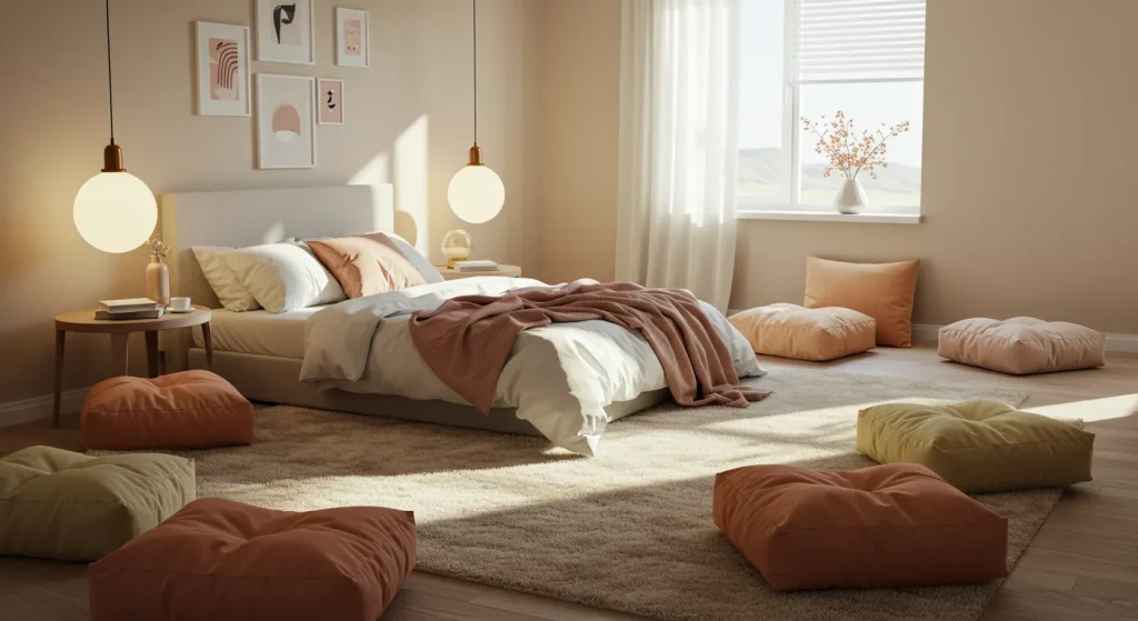 Floor cushions add a layer of low-level comfort and a relaxed vibe.
