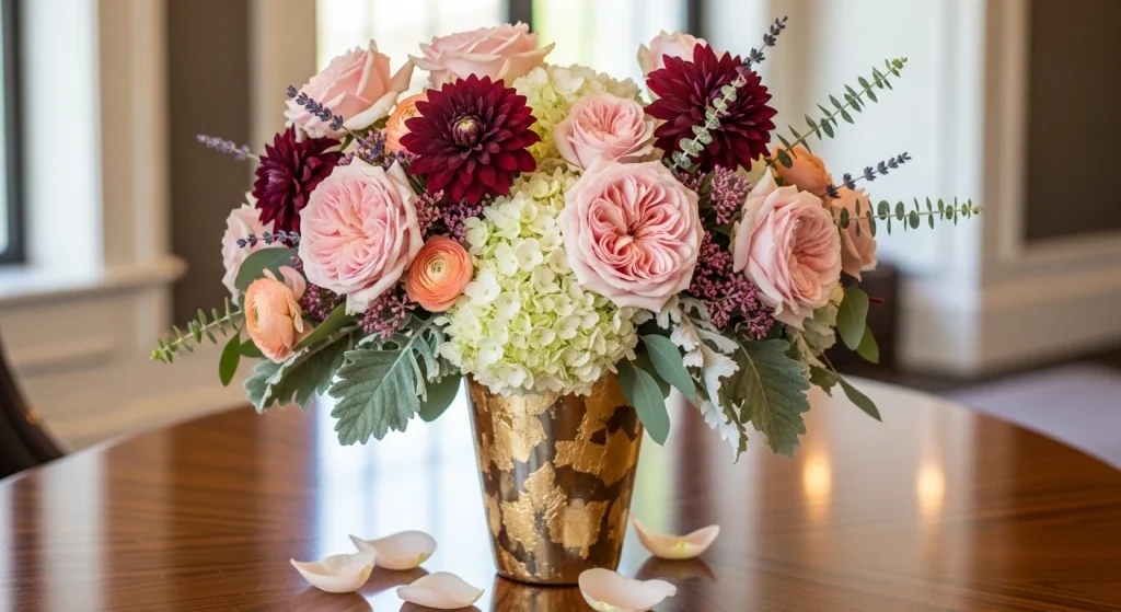 Consider the color palette of your space. Using tonal silk accents ensures your luxury flowers blend seamlessly with your existing interior textiles and upholstery.